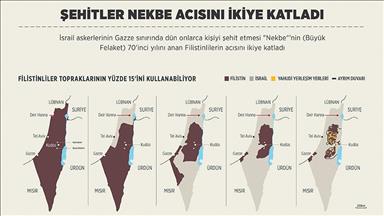 ABD Büyükelçiliği'nin Kudüs'e taşınması ve Nekbe'nin 70'inci yılını protesto etmek için dün Gazze sınırında düzenlenen gösterilerde biri bebek 59 Filistinli İsrail ordusunun saldırıları sonucu şehit olmuştu.