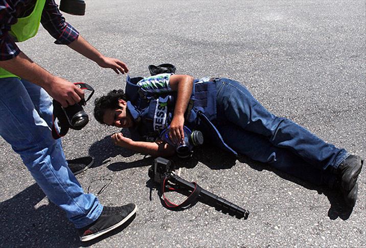 Ramallah’ta İsrail'in ayrım duvarı ve yasadışı yerleşim birimi inşasını protesto eden Filistinlileri görüntülemeye çalışan AA kameramanı Muaz Hamid, bacağına isabet eden plastik mermiyle yaralandı.
