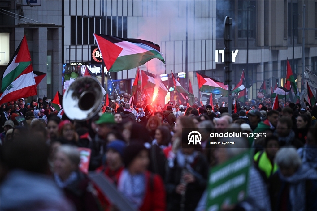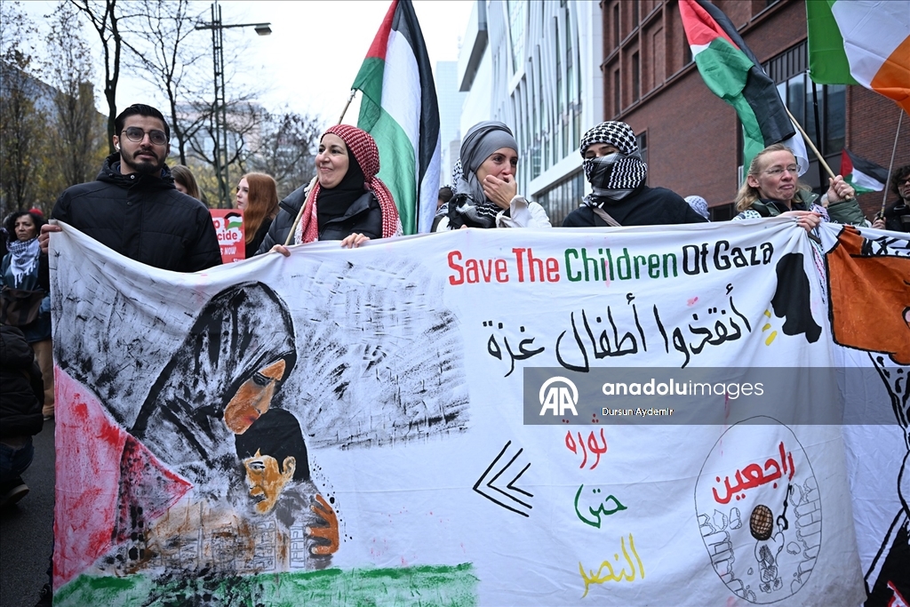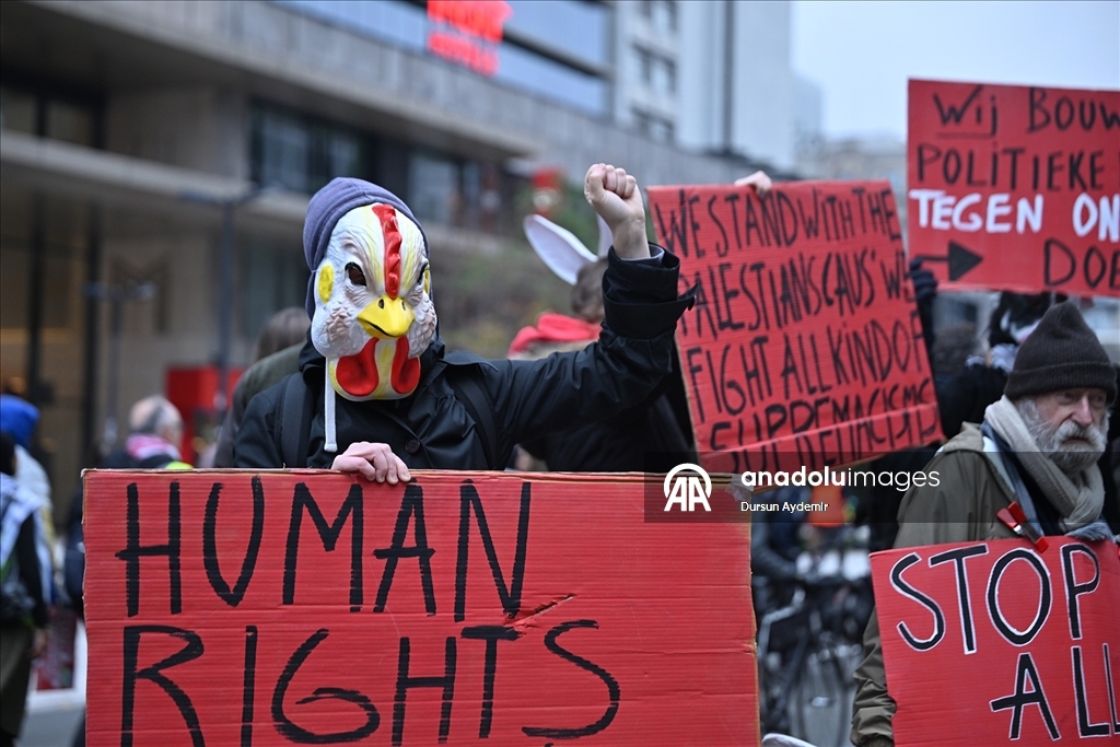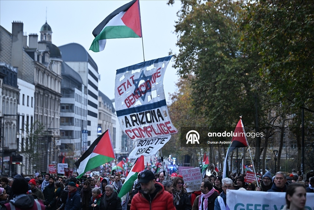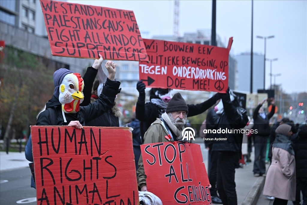 "Sivilleri bombalamak meşru müdafaa değil. Soykırıma hayır de!", "Kurtuluşa erişene kadar direniş!" ve "Filistin için ayağa kalkın!" yazılı dövizler taşıyan göstericiler, Belçika hükümetini İsrail'e karşı kapsamlı askeri ambargo uygulamaya davet etti.