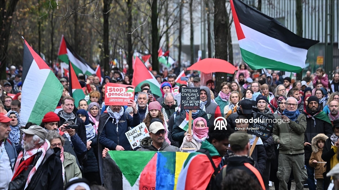 Belçika'da binlerce kişi Gazze'ye destek gösterisi düzenledi