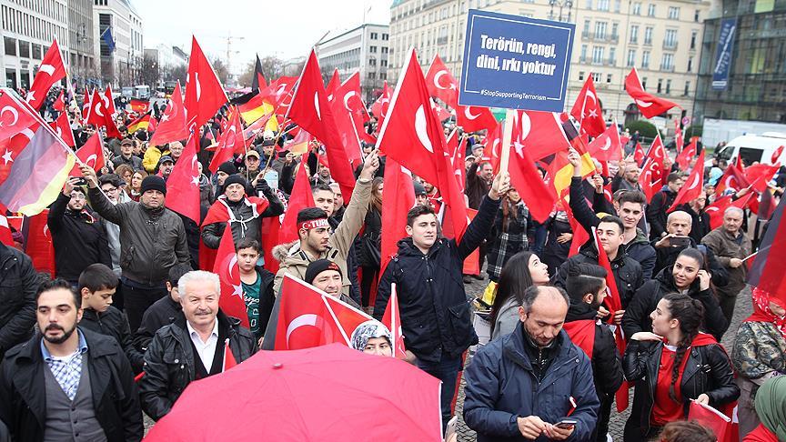 Almanya'daki Türkler, başkent Berlin'de terörü lanetlemek ve demokrasiyi desteklemek için bir gösteri düzenledi.