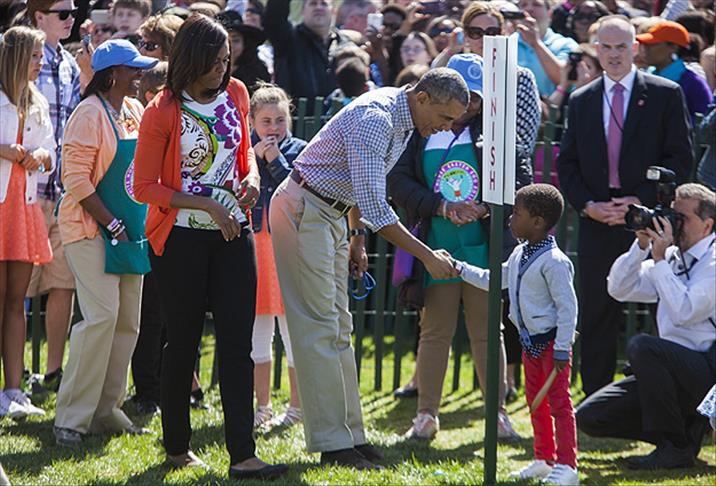Obama çifti daha sonra yanlarında "Paskalya tavşanı" ile bahçeye gelerek konuklarla tokalaştı, çocuklarla sohbet etti. ABD Başkanı Obama, kısa bir süre çocuklarla oynadı.