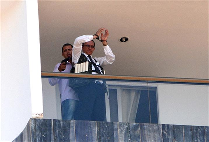 Otelin 13. katında balkonda silahını salladığı görülen saldırganın, elleri bağlı erkek rehinenin üzerine patlayıcı yüklü yelek giydirdiği belirtildi.