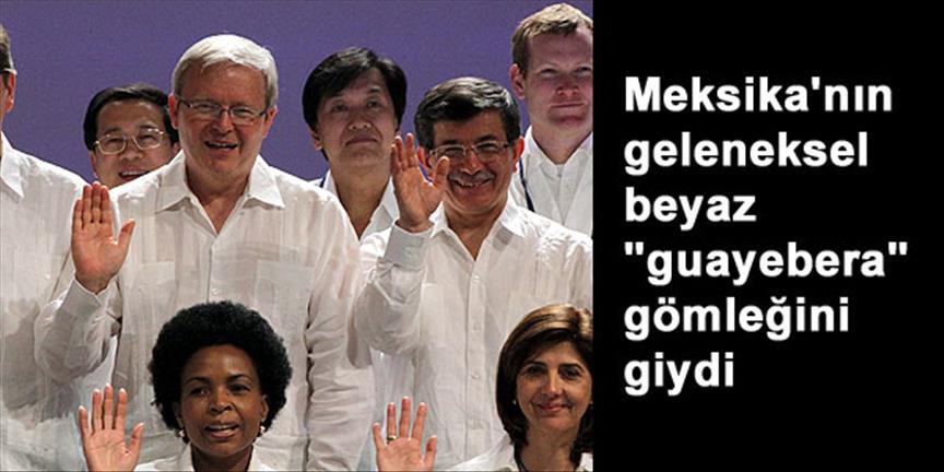 Aile fotoğrafı çektiren G-20 ülkelerinin dışişleri bakanları Meksika'nın geleneksel "guayebera" adlı beyaz gömleğini giyerek kameralara poz verdi.