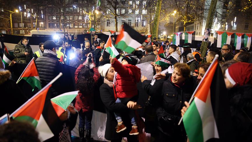 Belçika ve Lüksemburg'da yaşayan Filistinli grupların çağrısı üzerine, Brüksel'deki ABD Büyükelçiliği karşısında toplanan çok sayıda protestocu, ABD'nin Kudüs kararına tepki gösterdi. Gruptakiler, "Filistin'e özgürlük", "Direniş", "İsrail'i boykot", "Elçiliği taşımayın", "İsrail terörist devlet","ABD'yi boykot" şeklinde slogan attı.