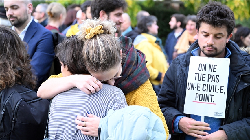 Avrupa Birliği (AB) kurumlarının bulunduğu Schuman Meydanı'nda yerel saatle 17.30 civarında bir araya gelen Araplar ve Yahudilerden oluşan bir grup, "Barış şimdi", "Arap-Yahudi dayanışması", "Seçimimiz birlik olmak", "Siyasi çözüm, askeri değil" yazılı pankartlar taşıdı.