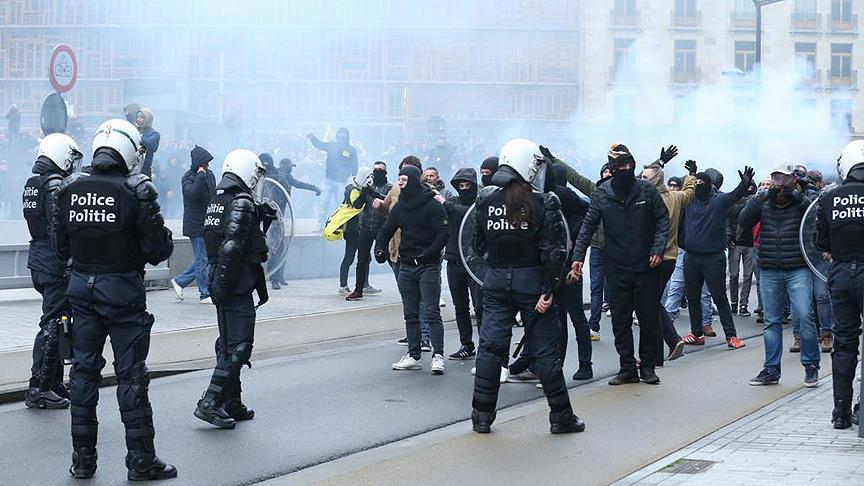 Belçika'nın başkenti Brüksel'de Avrupa Birliği (AB) binalarının bulunduğu alanda polis, aşırı sağcı ve göç karşıtı bine yakın göstericiye göz yaşartıcı gazla müdahale etti.
