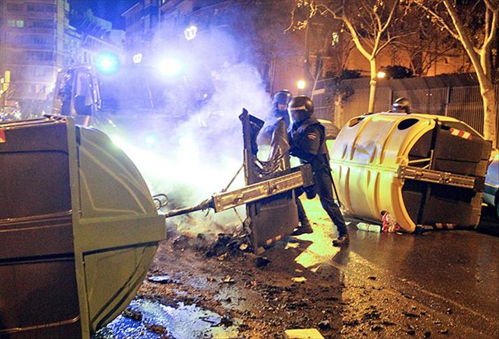 Gece boyunca süren gösterilerde çıkan şiddet olaylarından dolayı Madrid'de 5, Barcelona ve Alicante'de 3'er, Zaragoza ve Valencia'da 4'er kişi olmak üzere 19 kişinin gözaltına alındığı bildirildi. ''Burgos'a destek'' gösterileri, son 1 haftadır Burgos ve Madrid'deki protestolarda gözaltına alınıp, şartlı serbest bırakılanlar hakkındaki yasal işlemin tamamen kaldırılması talebinde yoğunlaştı.