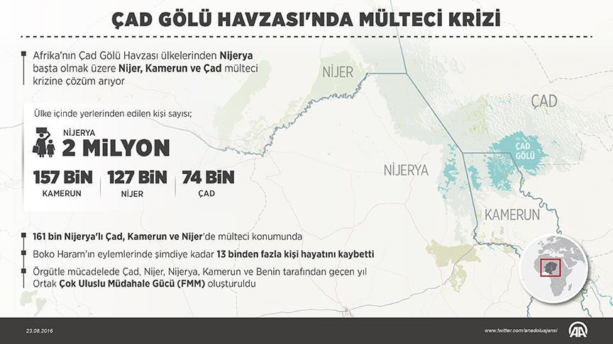 Çad Gölü Havzası'ndaki diğer ülkeler Kamerun, Nijer ve Çad'da da durum Nijerya'dan farklı değil. Boko Haram ve ordu arasındaki çatışmalar başta olmak üzere bölgedeki kuraklık, salgın hastalıklar, yoksulluk ve cinsel istismar gibi sorunlar sebebiyle Kamerun'da 157 bin, Çad'da 74 bin ve Nijer'de 127 bin insan evlerinden uzakta yaşam mücadelesi veriyor.