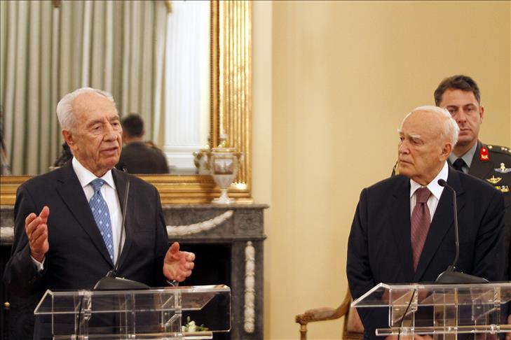 İsrail Cumhurbaşkanı olarak Yunanistan'a ilk resmi ziyaretini gerçekleştiren Şimon Peres, Yunanistan Cumhurbaşkanı Karolos Papulyas tarafından Atina'da devlet töreni ile karşılandı.