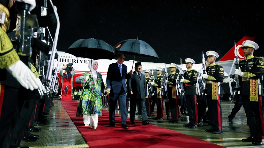 Cumhurbaşkanı Erdoğan'ı, Halim Perdanakusuma Askeri Havalimanı'nda, Endonezya Cumhurbaşkanı Prabowo Subianto, Türkiye'nin Cakarta Büyükelçisi Talip Küçükcan ve diğer yetkililer karşıladı.
