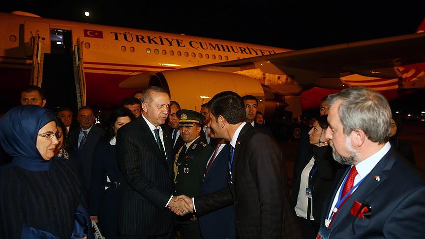 Cumhurbaşkanı Recep Tayyip Erdoğan, özel uçak "CAN" ile TSİ 18.20'de Özbekistan'ın başkenti Taşkent'e geldi.