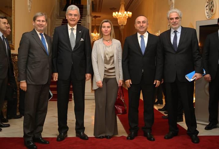 Çavuşoğlu, AB Bakanı ve Başmüzakereci Volkan Bozkır, AB Dış İlişkiler ve Güvenlik Politikası Yüksek Temsilcisi Federica Mogherini, Komşuluk Politikası ve Genişleme Müzakerelerinden Sorumlu AB Komiseri Johannes Hahn ve İnsani Yardım ve Kriz Yönetiminden Sorumlu AB Komiseri Christos Stylianides ile Ankara Palas'ta ortak basın toplantısı düzenledi.