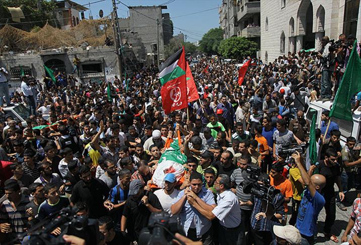 İsrail ve Filistinli gruplar arasında Gazze'de kalıcı ateşkesin sağlanması yönünde yürütülen müzakerelerin askıya alınmasının ardından İsrail'in Gazze'ye yönelik saldırılarında hayatını kaybeden Kassam Komutanı Dayf'ın eşi Vidad Usfur ile 7 aylık bebeği Ali'nin cenazesi, Cebaliye'deki Hulefau'r-Raşidin Camisi'nde kılınan namazın ardından toprağa verildi.