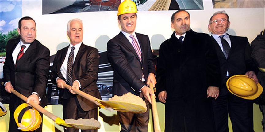 Konuşmaların ardından Eroğlu, Serdar Denktaş ve Sarıgül, başlarına baret takarak, temelin ilk harcını kürekle attı.