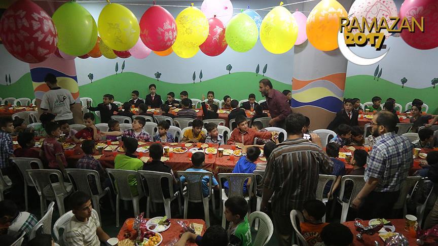 Suriye'nin başkenti Şam'da rejim güçlerinin kuşatması altındaki Duma ilçesinde yüzlerce yetim dönerli iftarla sevindi.
