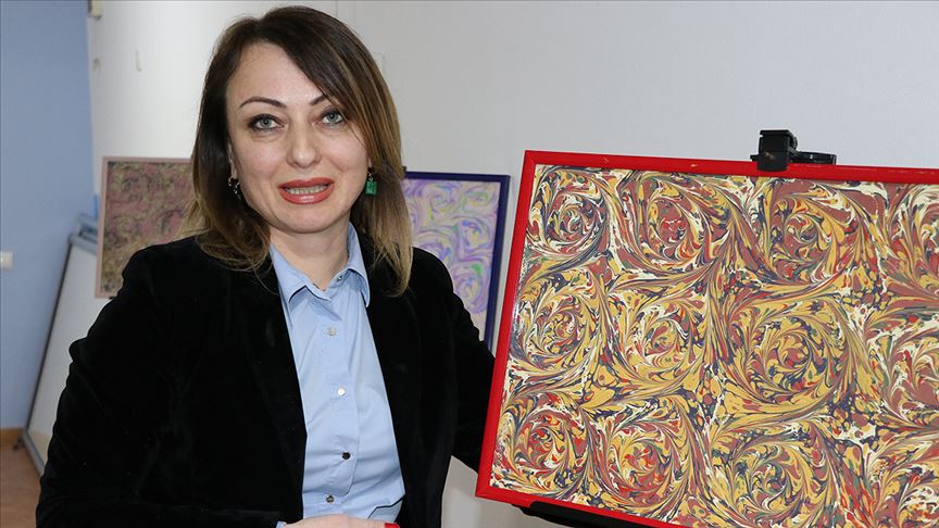 Tiflis Yunus Emre Enstitüsünde (YEE) 2014-2015'te Türkçe öğrendiğini ve bu süreçte bir öğretmenin tavsiyesiyle aynı çatı altında verilen ebru kurslarına başladığını ifade eden Çikhladze, kısa sürede kendini ebru sanatına adamaya başladığını belirtti.
