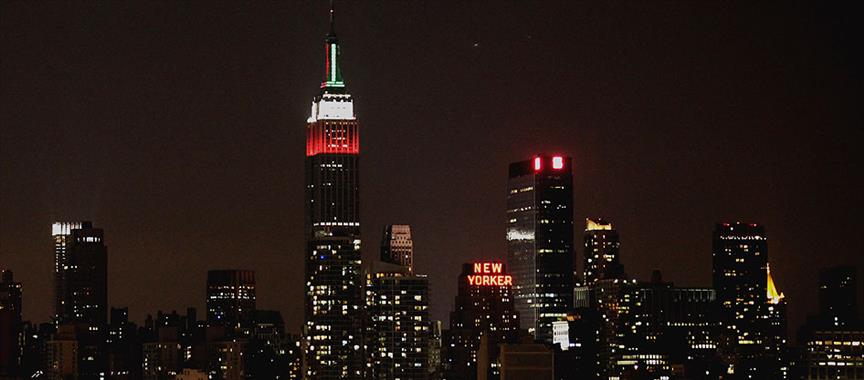 New York'un en büyük ve tarihi binalarından "Empire State Building" gökdeleni, Türk Bayrağı'nın renkleriyle ışıklandırıldı.