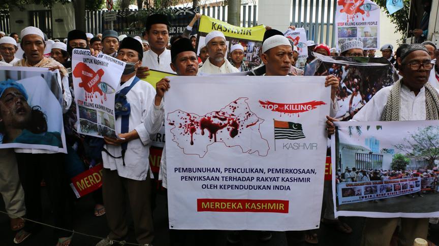 Endonezya'da "Keşmir Dayanış Günü" dolayısıyla Hindistan'ın Cakarta Büyükelçiliği önünde gösteri yapıldı.