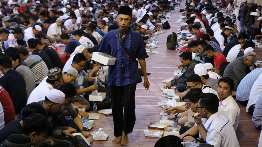 Başkent Cakarta’daki Güneydoğu Asya'nın en büyük camisi olarak bilinen ve başkentin sembolleri arasında yer alan İstiklal Camisi'ne gelen yüzlerce kişiye hayırseverlerin yardımıyla cami avlusunda toplu iftar verildi.
