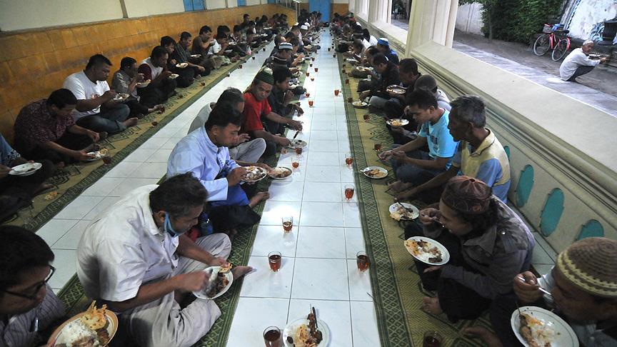 Endonezya'da Müslümanlar, ramazan ayı boyunca cami avlularında iftar yapmayı tercih ediyor.