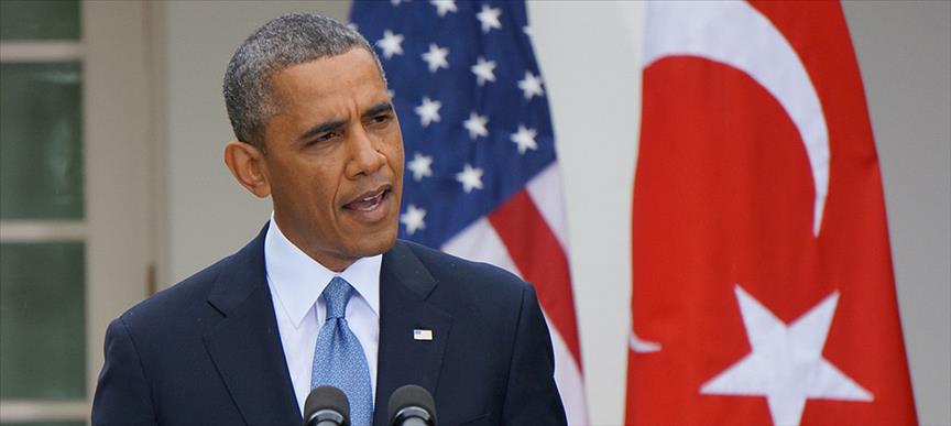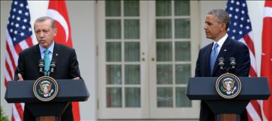 Başbakan Recep Tayyip Erdoğan ile Beyaz Saray Kabine Salonu'nda basına kapalı olarak yaklaşık 2.5 saat görüşen ABD Başkanı Barack Obama, görüşmenin ardından ortak basın açıklaması düzenledi.