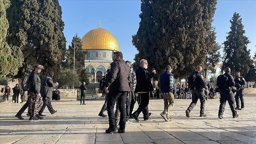 Açıklamada, Yahudi yerleşimcilerin İsrail güçlerinin korumasında 16 grup halinde Harem-i Şerif'e girdiği aktarıldı.