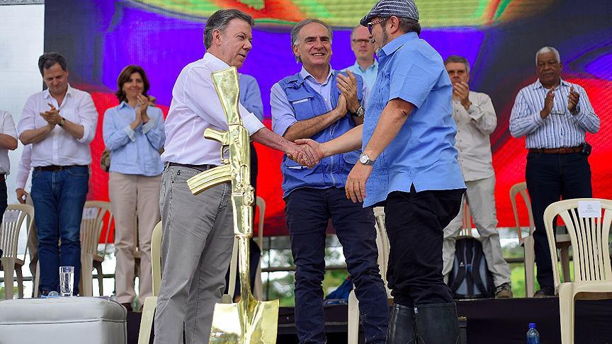 Kolombiya Devlet Başkanı Juan Manuel Santos, BM Kolombiya Misyon Şefi Jean Arnault, FARC lideri Rodrigo Londono, yabancı konuklar, bakanlar ve yüzlerce FARC militanı, Meta yönetim bölgesine bağlı Mesetas kenti kırsalındaki La Guajira toplanma alanında düzenlenen törenle örgütün yarım yüzyıldan fazla süren silahlı geçmişini noktaladığı tarihi ana şahitlik etti.