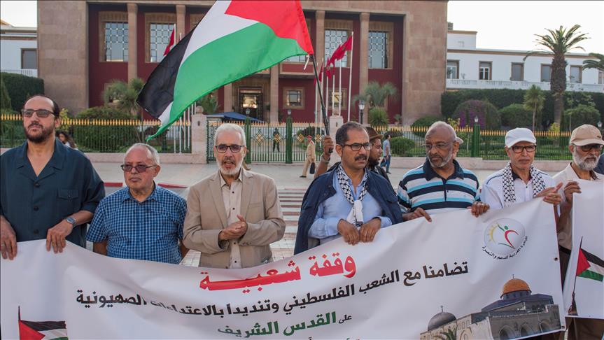 Fas'ın başkenti Rabat'ta, Yahudi yerleşimcilerin Kudüs ve Mescid-i Aksa'ya yönelik ihlalleri protesto edildi.