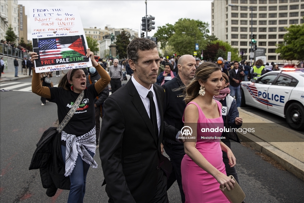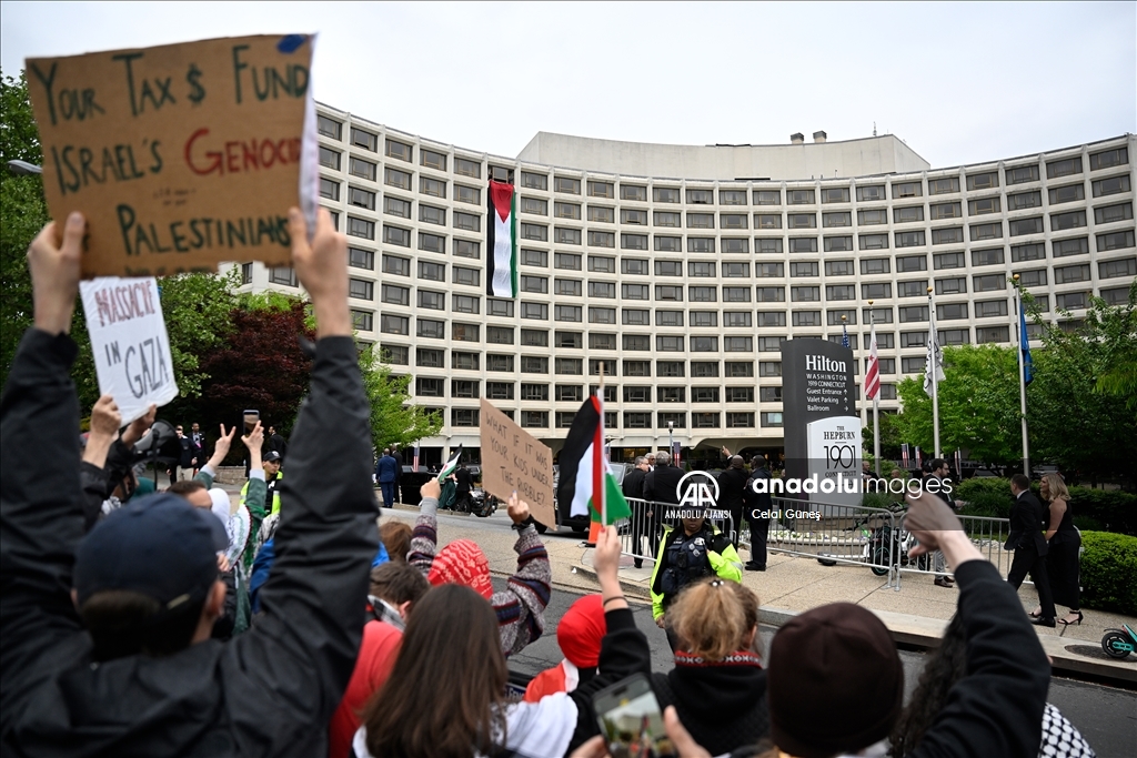 Filistin destekçileri, her yıl düzenlenen ve basın mensuplarının yanı sıra ünlüler, siyasetçiler ve ABD Başkanının da katıldığı Beyaz Saray Muhabirleri Derneği Yemeği'ni protesto etti.