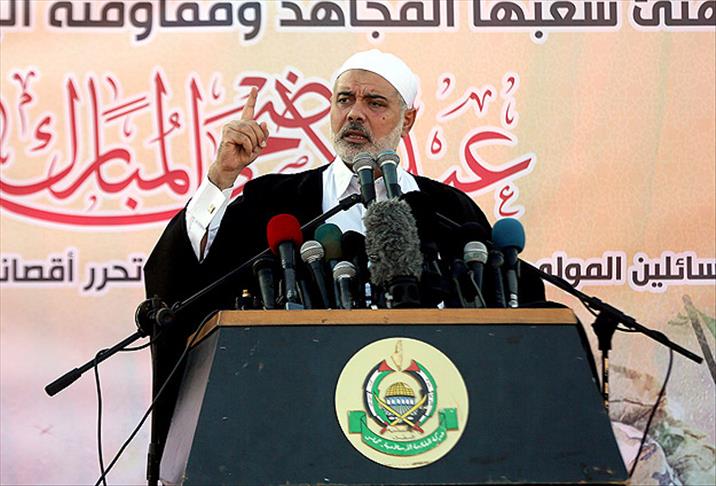 Hamas Siyasi Büro Başkan Yardımcısı İsmail Heniyye Gazze'deki Yermuk Stadyumu'nda kıldırdığı bayram namazının ardından verdiği hutbede, İsrail'in Gazze'ye saldırılarına değindi.