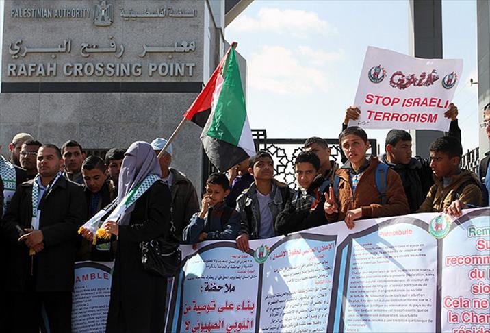 Filistinli bir grup öğrenci, Mısır tarafından kapatılan Refah Sınır Kapısı'nın yeniden açılması talebiyle gösteri düzenledi.