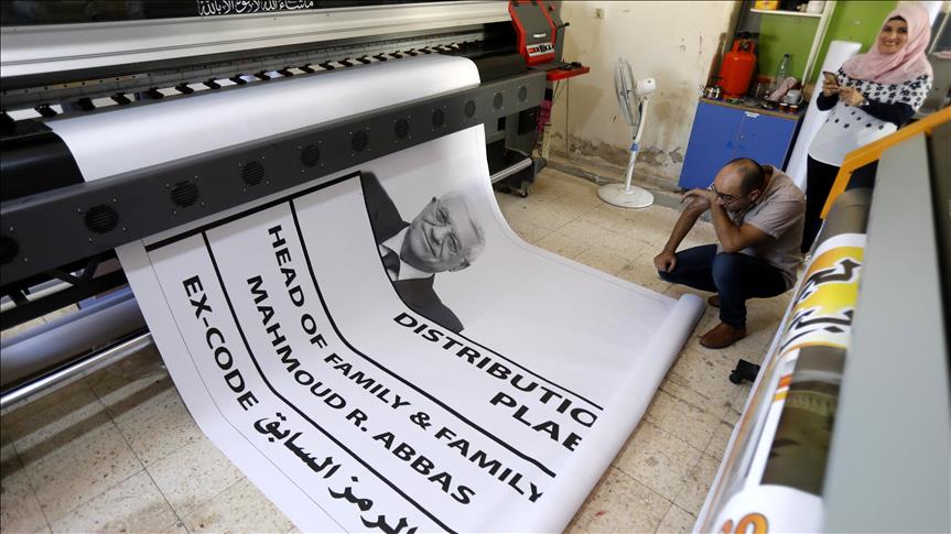 Beytüllahim kentindeki Filistinli aktivistler tarafından hazırlanan, mültecilerin kullandığı kimliğe benzetilen dev panoda, Filistin Devlet Başkanı Mahmud Abbas'ın fotoğrafı ve kimlik bilgileri yer alıyor.