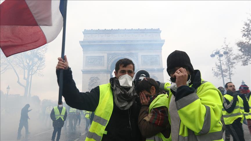 Başkent Paris'in Champs-Elysees Caddesi çevresinde 1 Aralık'ta düzenlenen, binlerce kişinin katıldığı gösteride polisin eylemcilere sert müdahalesi, sokaklarda araçların ve çöp bidonlarının yakılması, iş yerlerinin yağmalanması, sık aralıklarla ses bombalarının patlatılması ve alevlerin yükselmesi kenti "kaosa" sürüklemişti.