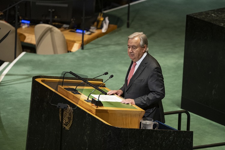 Egemen ulusların topraklarının işgal edildiğini, açlığın silah olarak kullanıldığını ve gerçeklerin susturulduğunu belirten Guterres, “Nasıl bir dünya seçeceğiz? Kaba güçlerin olduğu bir dünya mı, yoksa yasaların olduğu bir dünya mı? Gücün haklı olduğu bir dünya mı, yoksa herkesin haklarının olduğu bir dünya mı?” diye konuştu.