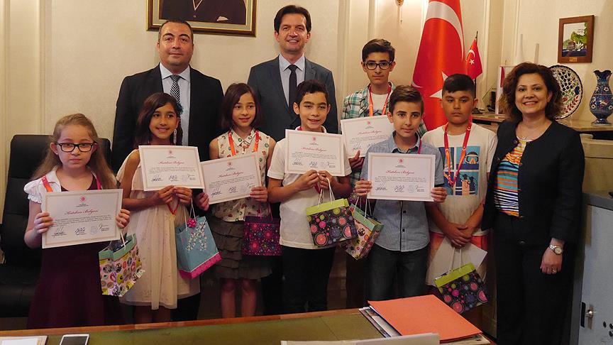 Strazburg Başkonsolosu Özgür Çınar’ın elinden madalya ve diplomalarını alan öğrenciler, kısa sürede Türkçeyi güzel konuşma ve atasözleri ve deyimleri öğrendiklerini belirterek, arkadaşları arasında daha güzel ve akıcı konuşma yarışmaları yaptıklarını anlattı.