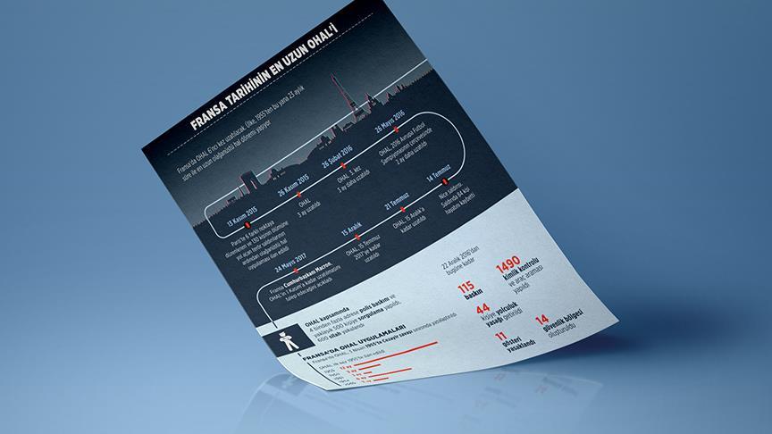 Geçen yıl Fransa'da düzenlenen 2016 Avrupa Futbol Şampiyonası (EURO2016) çerçevesinde OHAL tekrar uzatılarak, 26 Temmuz'a kadar sürdü. Bu tarihte sona ermesi gereken olağanüstü hal, 14 Temmuz'da Nice kentinde düzenlenen 84 kişinin hayatını kaybettiği terör saldırısının ardından 15 Aralık'a kadar bir kez daha uzatıldı.