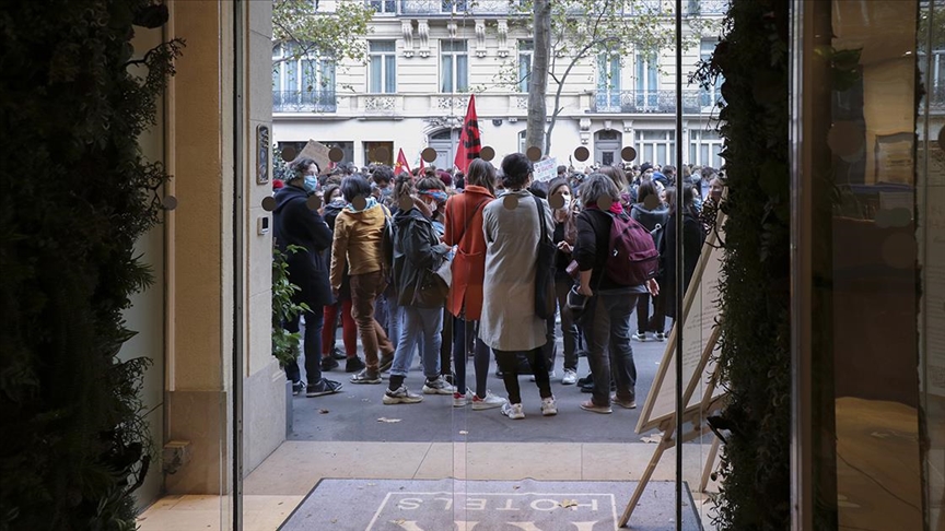 Başkent Paris'teki protesto gösterisine katılan eğitim çalışanları, Lüksemburg Bahçelerinden Grenelle Caddesi'ne yürüdü.
