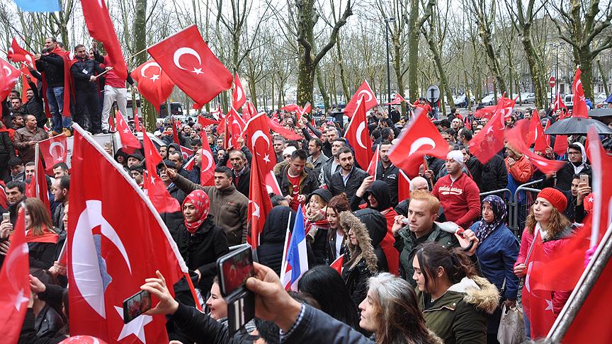Bordo şehrinin bağlı olduğu Aquitaine bölgesindeki Türk vatandaşları, Bordo Başkonsolosluğu binası önünde toplandı.