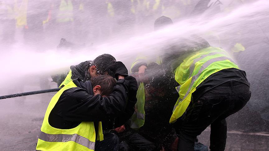 Eylemciler, geçen cumartesi sabahın erken saatlerinde yoğun güvenlik önlemlerinin alındığı Champs-Elysees Caddesi çevresinde toplanmıştı. Polis, caddeye girmelerine izin vermediği eylemcilere göz yaşartıcı gaz ve tazyikli suyla müdahale etmişti.