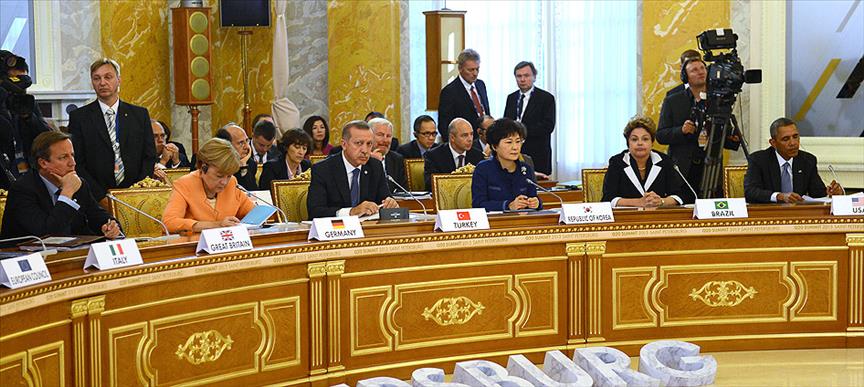 Petersburg'un Strelna kasabasında düzenlenen G-20 zirvesi'nin "Büyüme ve küresel ekonomi" konulu oturumunda konuşan Rusya Devlet Başkanı Putin, küresel ekonomi konusuna değinerek, ekonomik kriz şartlarının daha tam olarak geçmediğini belirtti.