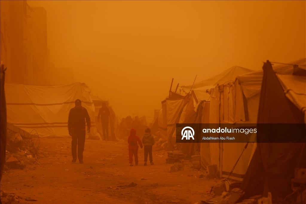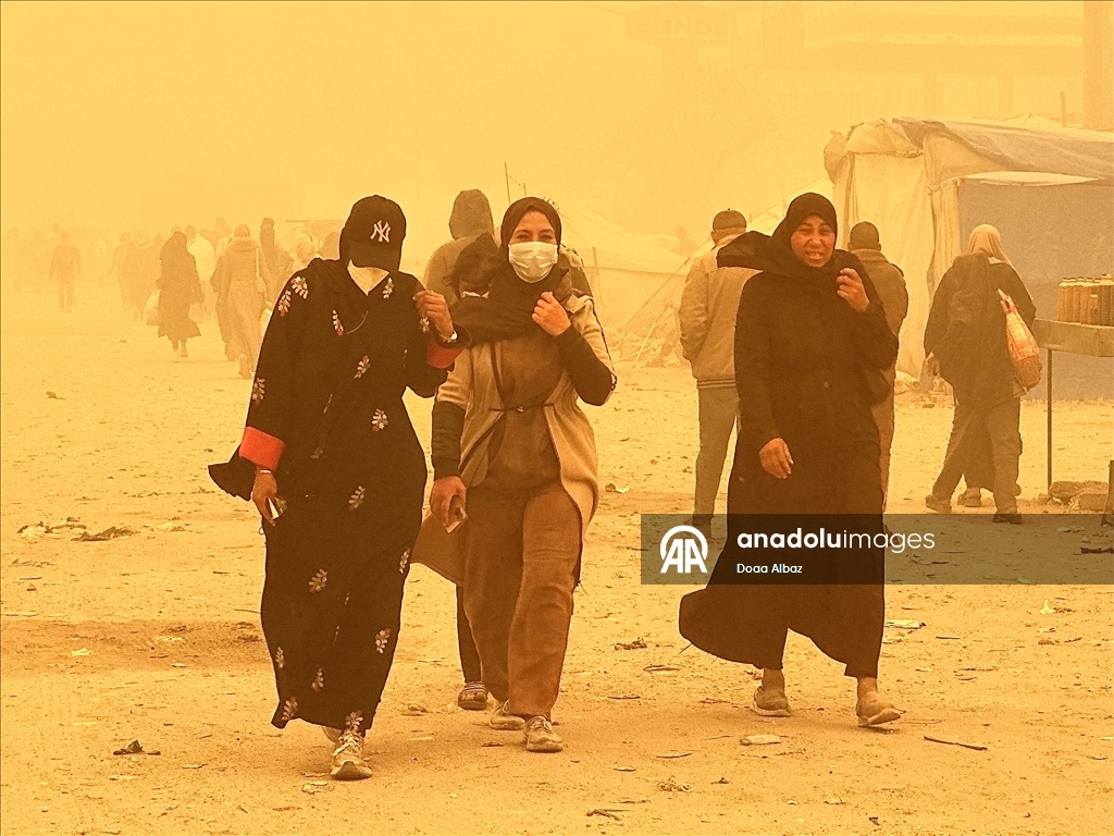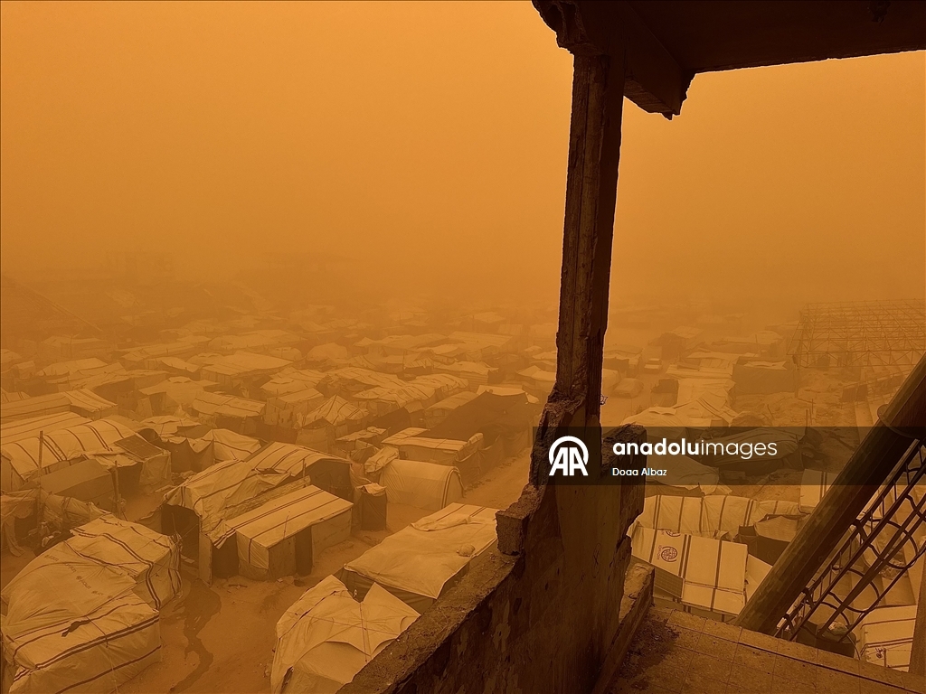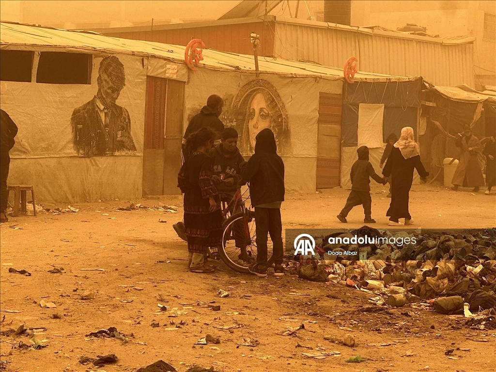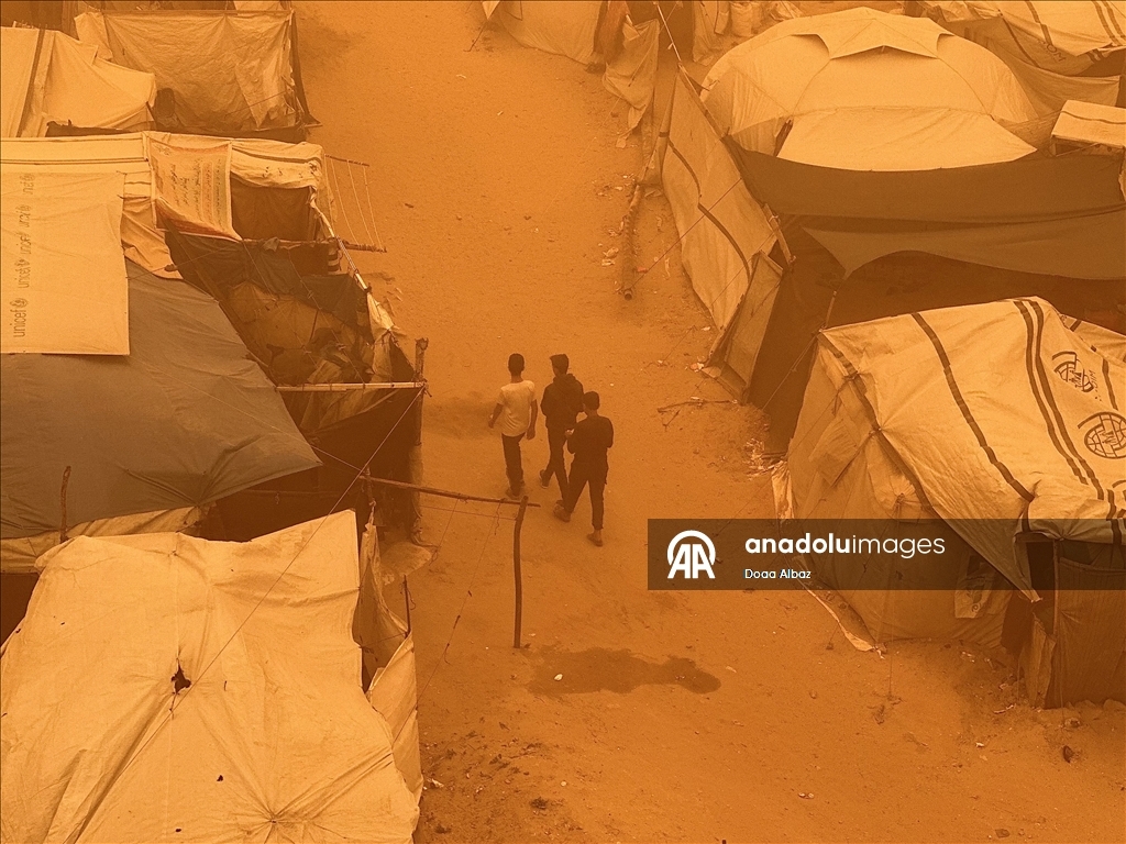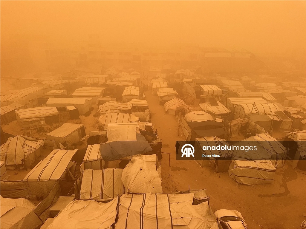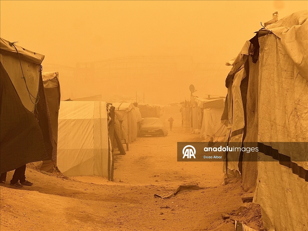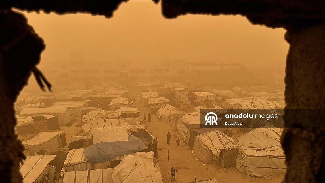 Sosyal medyada paylaşılan görüntülerde güçlü ve toz taşıyan rüzgarların, yerinden edilen Filistinlilerin çadırlarını ve çevredeki ağaçları şiddetli şekilde sarstığı görülüyor.