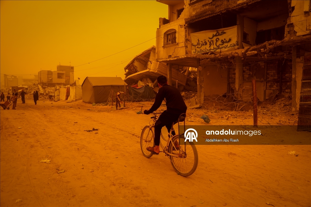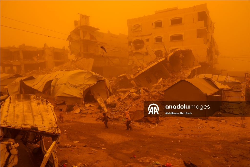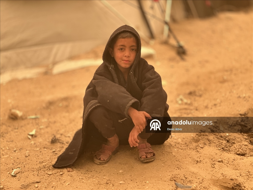 Gazze'de İsrail'in şiddetli saldırılarından kurtulabilen Filistinliler, temel ihtiyaçlar ve tıbbi malzemelerin eksikliği, yer yer etkili olan şiddetli soğuk ve fırtınalı hava ile son olarak etkili olan kum fırtınası nedeniyle ciddi zorluklar yaşıyor.