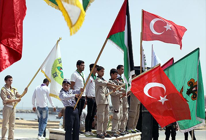 Törende Mavi Marmara gemisine düzenlenen saldırıda hayatını kaybeden 9 kişinin fotoğrafının yanı sıra Türk ve Filistin bayrakları ile çeşitli dövizler taşındı.