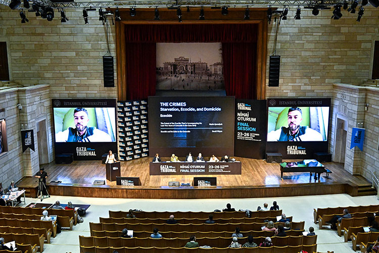 Eski Birleşmiş Milletler (BM) Filistin Raportörü Prof. Dr. Richard Falk başkanlığında, İstanbul Üniversitesi Prof. Dr. Cemil Birsel Konferans Salonu’nda düzenlenen "Gazze Mahkemesi: Nihai Oturum"un ikinci gününde "Suçlar" başlıklı oturum gerçekleştirildi. Bu oturumda, İsrail'in "aç bırakma, ekolojik kırım ve ev yıkımı suçları" değerlendirildi.
