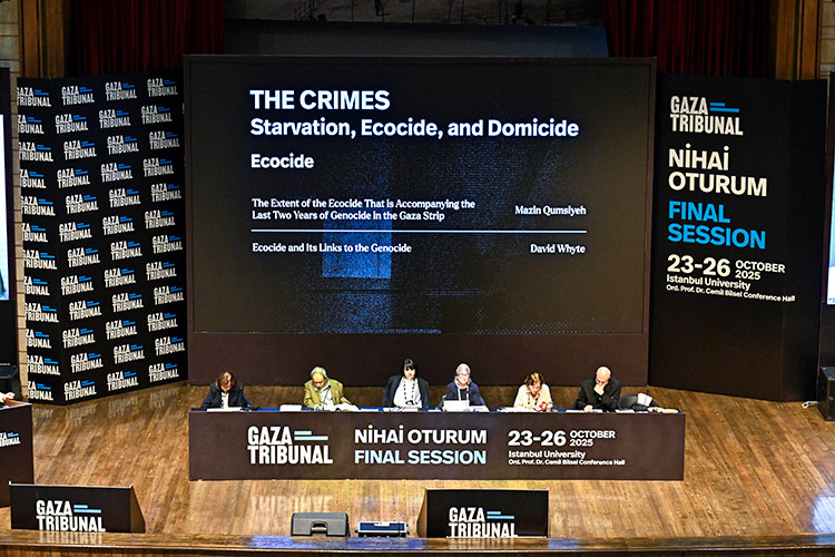 İsrail'in Gazze'de işlediği savaş suçlarını araştırmak üzere kurulan küresel ve bağımsız girişim olan "Gazze Mahkemesi"nin nihai oturumunun ikinci gününde, İsrail'in "aç bırakma, ekolojik kırım ve konutların yıkımı suçları" ele alındı.