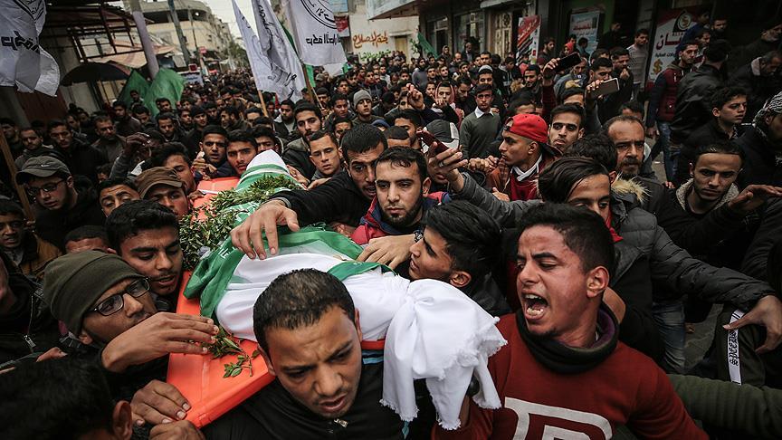 Birkaç hafta önce Gazze'nin güneyindeki Han Yunus kentinin kuzey sınırında katıldığı barışçıl gösteriler sırasında İsrail askerlerinin ateş açması sonucu boynundan yaralanan ve dün akşam saatlerinde şehit olan Filistinli Enver Muhammed Kudeyh (33) de bugün toprağa verildi.
