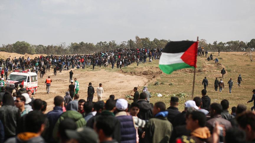 İsrail ablukası altındaki Gazze Şeridi'nin İsrail sınırında dün düzenlenen "Filistin Toprak Günü" gösterilerine İsrail askerlerinin gerçek mermi ile müdahale etmesi sonucu 15 Filistinli şehit olmuş, yüzlerce Filistinli yaralanmıştı.
