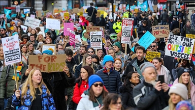 Başkent Londra'daki Russell Meydanı'nda toplanan eylemciler, yaklaşık 3 kilometrelik güzergahı takip ederek Başbakanlık Ofisi 10 Numara'nın bulunduğu Downing Sokağı girişinde toplandı.
