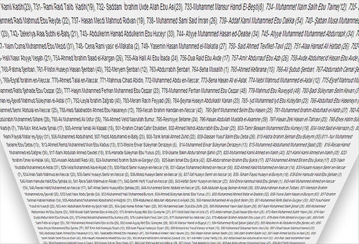 Listede bulunan isimlerin, istatistik verisi olmanın ötesinde hayatını kaybeden her Filistinlinin yakınları, arkadaşları bulunan birer "insan hayatı" olduğunu hatırlatıyor, isim listesini tarihe bir not düşmek için yayınlıyoruz.